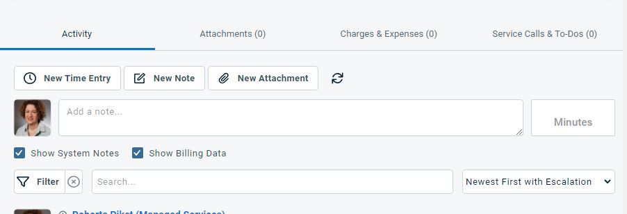 2. If you are taking over a ticket, please make sure to read all the ticket notes and time entries before getting started, whether you are asked to or not. You can uncheck the box for “Show System Notes” to make it easier to see the notes that are technically relevant. Please don’t assume that all the info you need about the ticket is in the description.