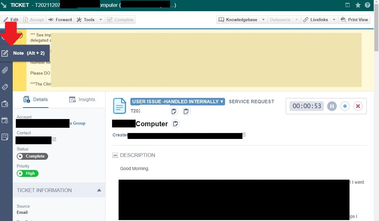 note template when creating a ticket note. Click the note icon to create a new ticket note: