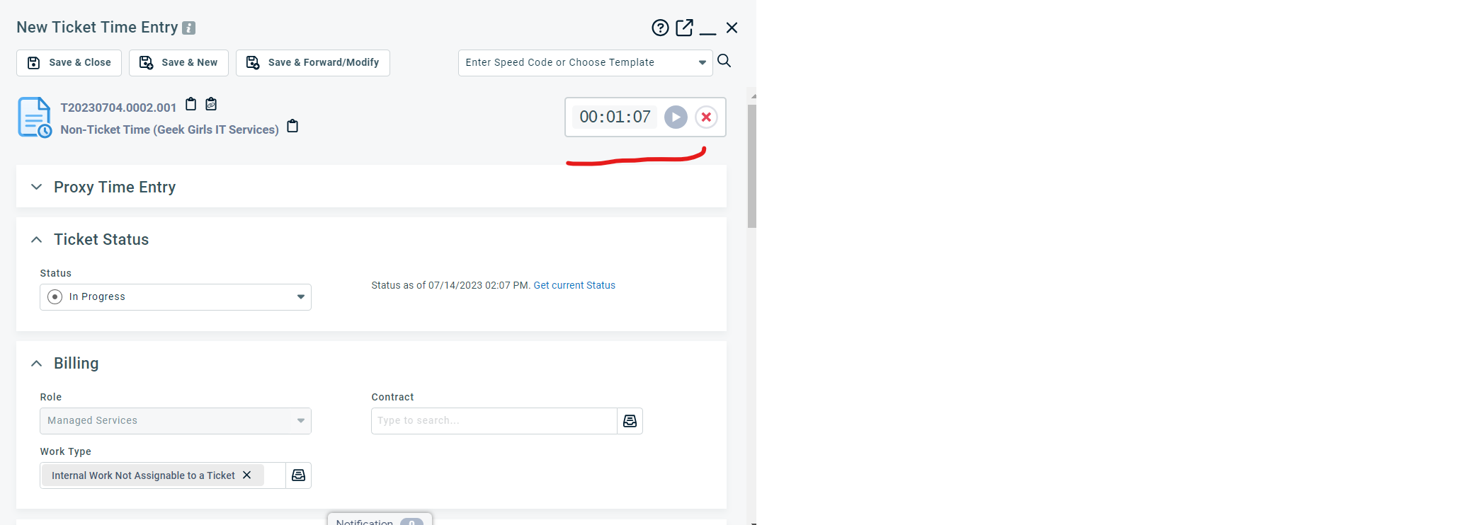 Technicians and temporary employees should enter all the time they work, not just customer ticket time, in Autotask. You should use the current instance of the ticket template called Non-Ticket Time. The template number is: T20230704.0002.000.