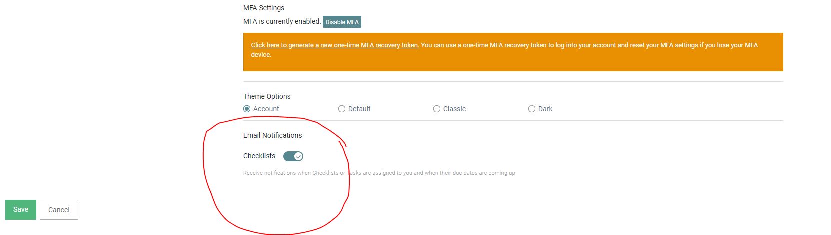 You must enable email notifications or you will not be notified when there is a checklist item coming due for which you're responsible.