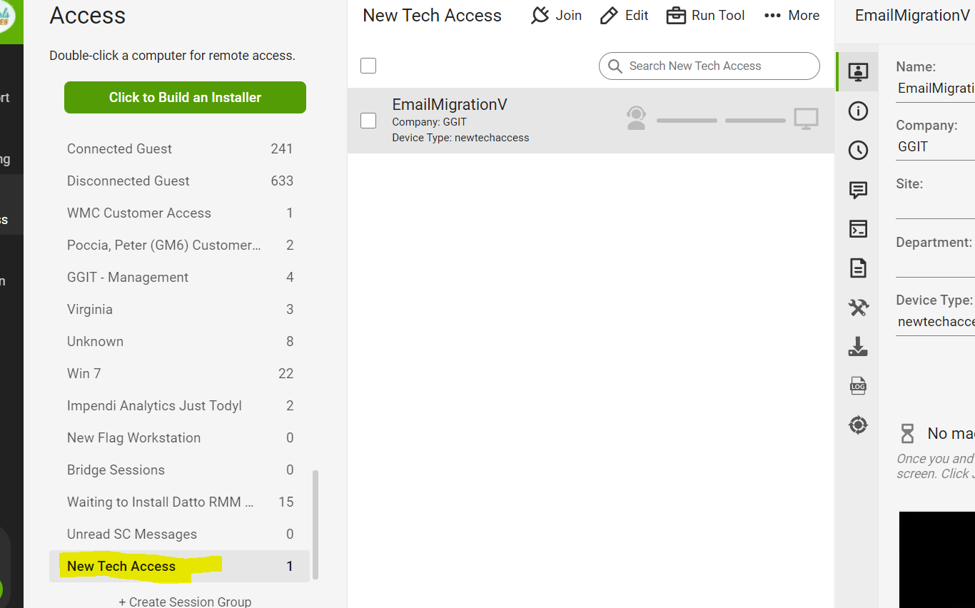 The New Tech Access group is for techs in the probationary period who do not have access to all groups.